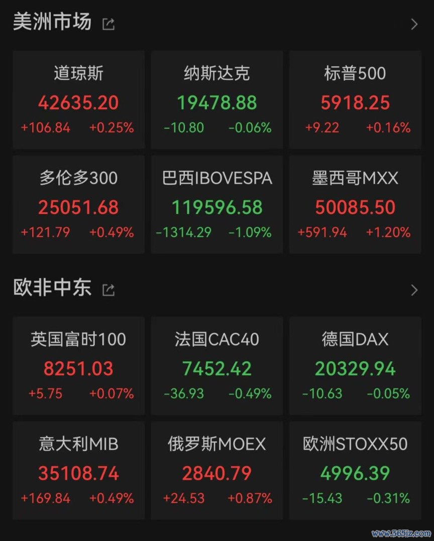 美股三大指數(shù)震蕩。截至收盤,道瓊斯工業(yè)指數(shù)上漲0.25%,納斯達克指數(shù)下跌0.06%,標(biāo)普500指數(shù)上漲0.16%。其中,納斯達克指數(shù)連續(xù)兩個交易日下跌。